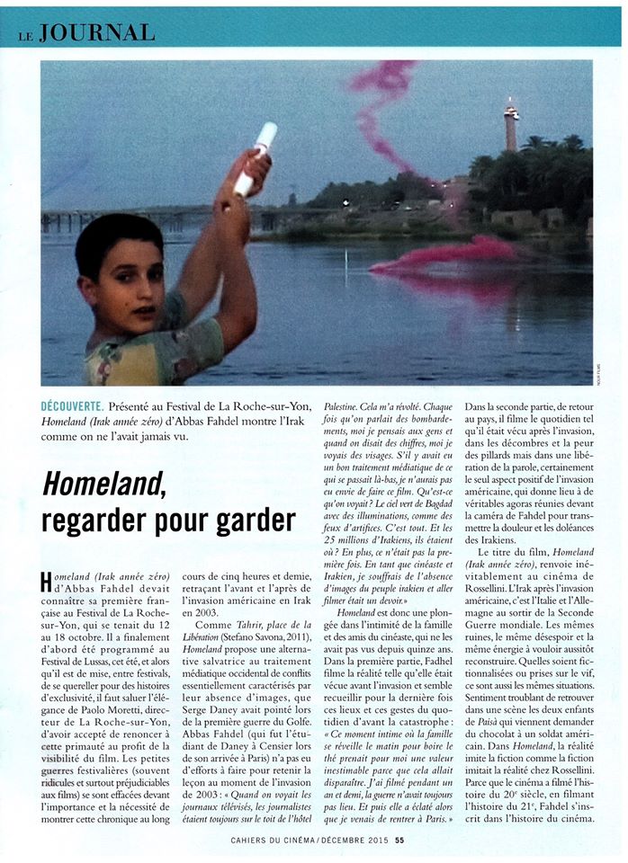 Home » HOMELAND (IRAQ YEAR ZERO) » A lire dans Les Cahiers du Cinéma, n° 717, décembre 2015